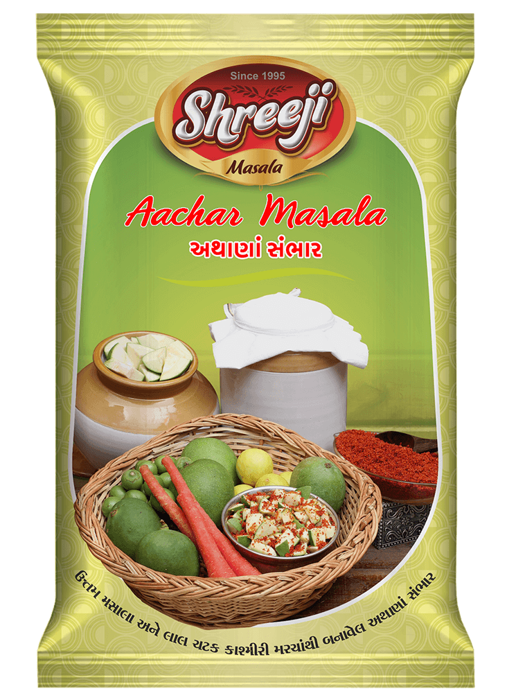 Shreeji Achar Masala is made from super quality Kashmiri Chilly, Rajasthan’s best yellow fenugreek, Kabuli Hing and secret spices.